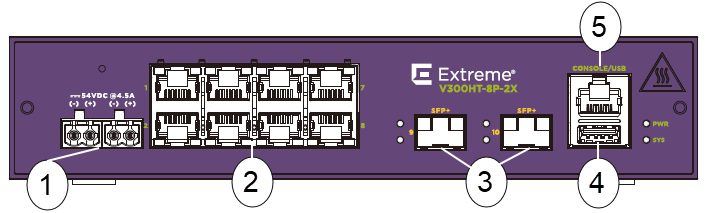 The Virtual Port Extender V300HT-8P-2X model is a high-temperature model that offers the following features: