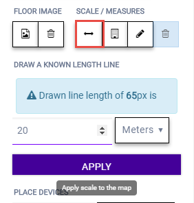 that displays. In the following figure, the floor plan scale is set (65px = 20 Meters).