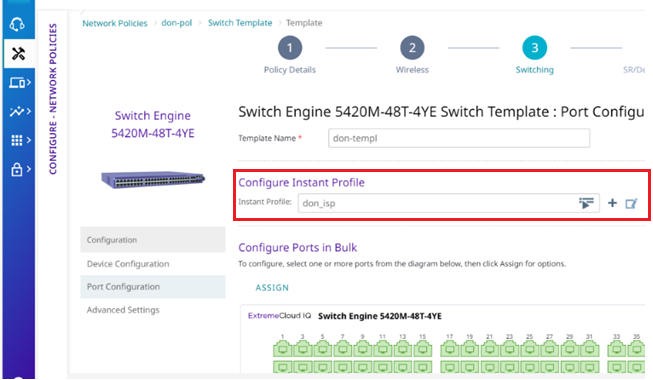 Profile from the Instant Port Profile list.