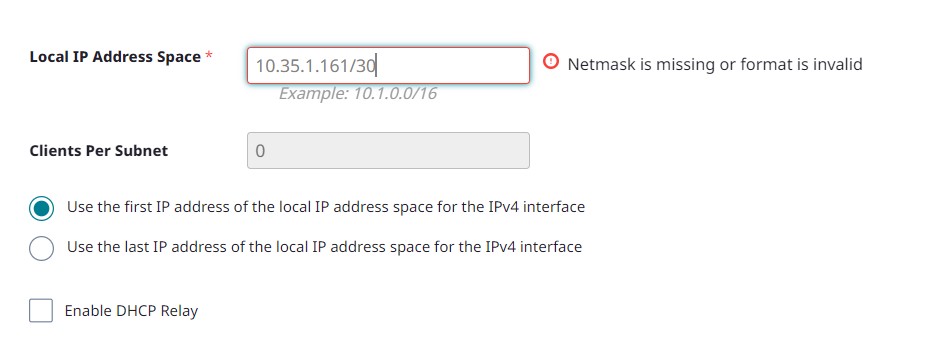 Broadcast Address (10.35.1.163) - Unable to use for ExtremeCloud IQ (Classic)