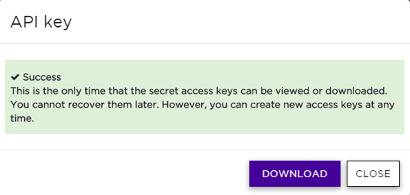 To download the API key as a .json file, select