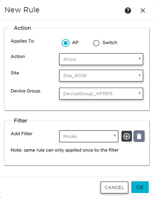 To create a rule for access points, select AP.