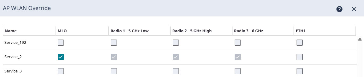 ExtremeCloud IQ Controller will display a warning if the network reassignment affects the primary BSSID on the radios, resulting in a radio reset. You will have the opportunity to consider the impact of network reassignment before overriding a WLAN.ExtremeCloud IQ Controller automatically determines the related role assignments that are referred by the new WLAN service, and it adjusts the role listing per AP. Roles assigned to the Profile and roles referenced by the new WLAN Service are merged. The larger role set is visible per AP for diagnostic purposes.