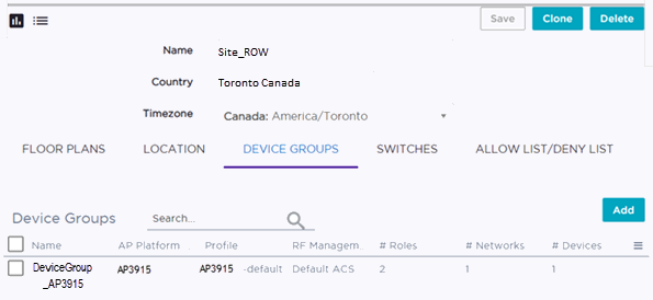 Go to Configure > Sites and select a site. Then, select Device Groups > Add and configure the following parameters: