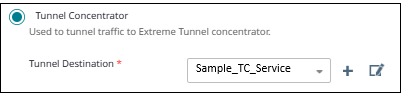 The new Tunnel Concentrator service displays as Tunnel Destination within the User Profile configuration.