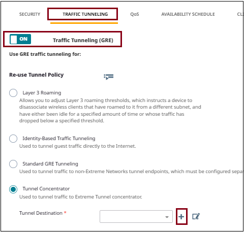 Select the Traffic Tunneling tab and toggle Traffic Tunneling (GRE) to ON.