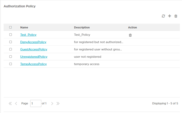 ExtremeGuest Essentials portal provides the following default Authorization Policies: