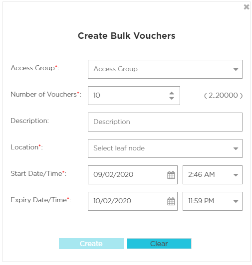 ExtremeGuest supports creating between 2 and 20,000 vouchers at a
