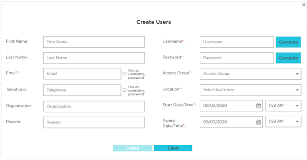 username/password is selected in the Email or Telephone fields, the Password field is not present.