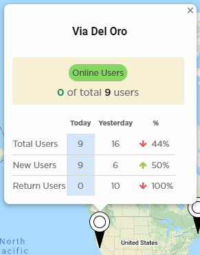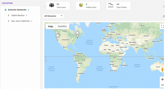 The Summary is divided into to two sections: The left-panel tree and the right-panel Summary Details. Use the left-panel tree to navigate to sites within your networks. Expand the tree and select a site to display user information specific to that site location.