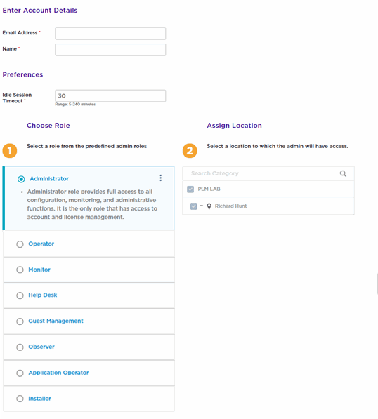 Monitor role has the ability to view dashboards, view active users (with block access) including devices. Monitor role can create and execute reports based on assigned location and create vouchers. Monitor role does not have access to configuration dialogues including templates.