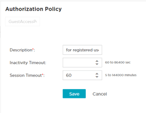 ExtremeGuest Essentials portal provides the following default Authorization Policies: