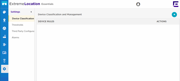 The Device Classification and Management window opens. This window displays the device classification rules configured for this ExtremeLocation Essentials account.