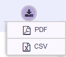 Select the PDF button to save the current state of the dashboard as a Portable Document Format (PDF) file. Select the CSV button to save the current state of the dashboard as a Comma Separated Value (CSV) file.
