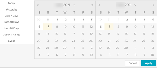 Select the start date and end date for the custom range from the displayed calendar and select Apply.
