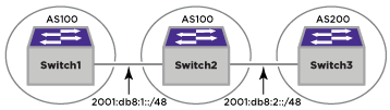 create vlan v1 create vlan v2 create vlan lpback enable loopback lpback configure v1 ipaddress 2001:db8:1::2/48 configure v2 ipaddress 2001:db8:2::1/48 configure lpback ipaddress 2001:db8:2131::2/48 enable ipforwarding ipv6 configure v1 add ports 1:9 configure v2 add ports 1:11 configure bgp AS-number 100 configure bgp routerid 1.1.1.2 create bgp neighbor 2001:db8:1::1 remote-AS-number 100 create bgp neighbor 2001:db8:2::2 remote-AS-number 200 configure bgp neighbor 2001:db8:1::1 source-interface ipaddress 2001:db8:2131::2 enable bgp neighbor all capability ipv6-unicast enable bgp neighbor all enable bgp configure ospfv3 routerid 1.1.1.2 configure ospfv3 add vlan all area 0.0.0.0 enable ospfv3