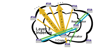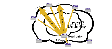 Assisted replication can be thought of as moving the head-end replication from every end-point to a small set of replicator nodes. The end result is the same, however, as each end-point receives a unique copy of the BC/MC frame (unique because it is unicasted directly to the end-point). Assuming the replicators are placed in the spine or core of the network, the actual number of frames traversing any single link can be greatly reduced.