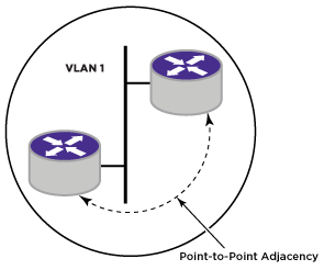 Point-to-point adjacencies can include no more than two routers in the same VLAN. Point-to-Point Adjacency shows a point-to-point adjacency.