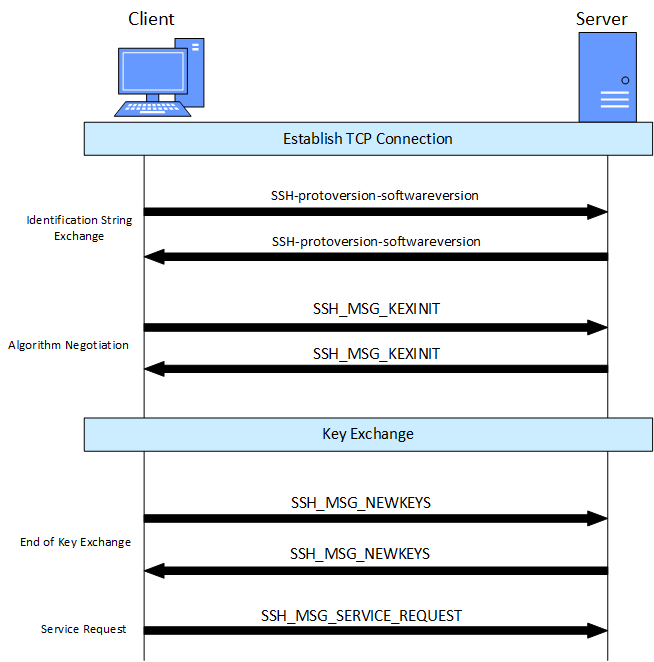After the key exchanges, the local authentication methods that are supported (public key and password authentication) are tried first. If there is a matching key or password, the AAA authentication will be tried out. Else, the user will be considered to be unknown, and the session will be terminated.