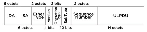 SubType—Defines the ULP type included in the PDU. The value of Subtype is 0x2 when BPE CSP is the ULP. See table 43-1 of IEEE-802.1Q-2014. The SubType field is a 10 bits long.