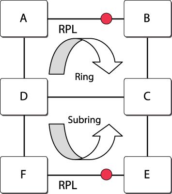 The RPL owner is the node that blocks the RPL, and the other node of the RPL is called the RPL neighbor node. All other nodes are called non-RPL nodes. When a link fails, the RPL owner unblocks the RPL to allow connectivity to the nodes in the ring. The G.8032/ERPS rings utilize a channel (dedicated path) for carrying their control traffic which is the R-APS messages (Ring Automatic Protection Switching).