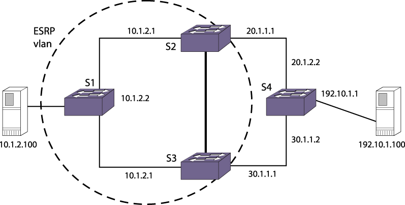 If you configure a MAC address limit on VLANs that participate in an ESRP domain, you should add an additional back-to-back link (that has no MAC address limit on these ports) between the ESRP-enabled switches.