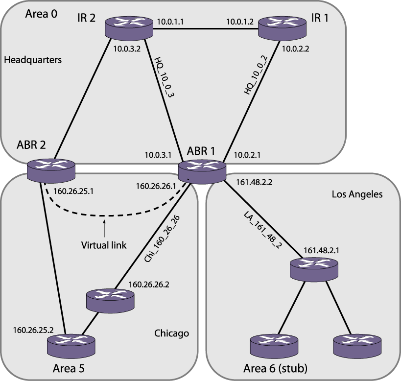 Area 6 is a stub area connected to the backbone by way of ABR 1. It is located in Los Angeles and has the following characteristics: