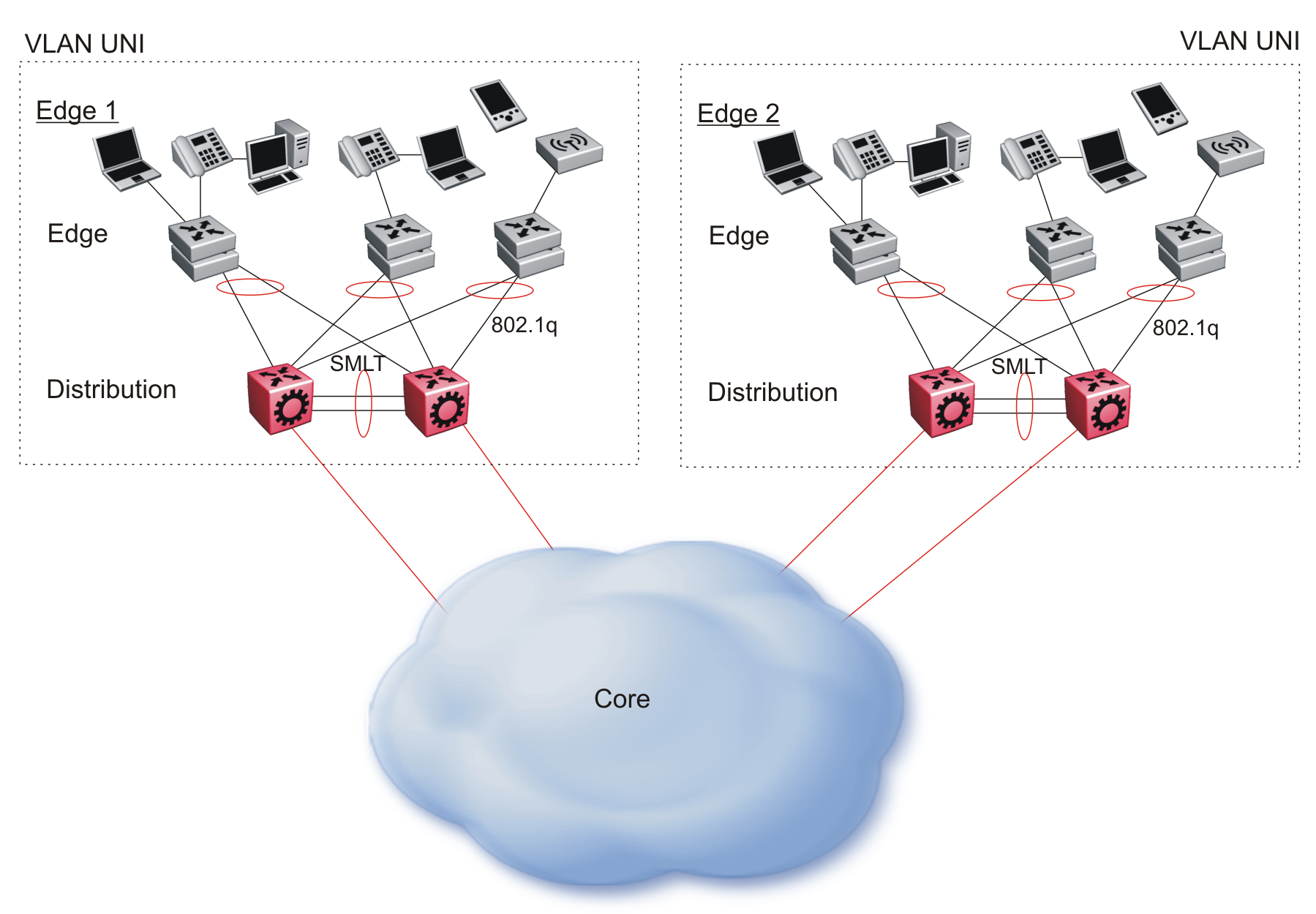 Provisioning an SPBM core is as simple as enabling SPBM and IS-IS globally on all the nodes and on the core facing links. To migrate an existing edge configuration into an SPBM network is just as simple.