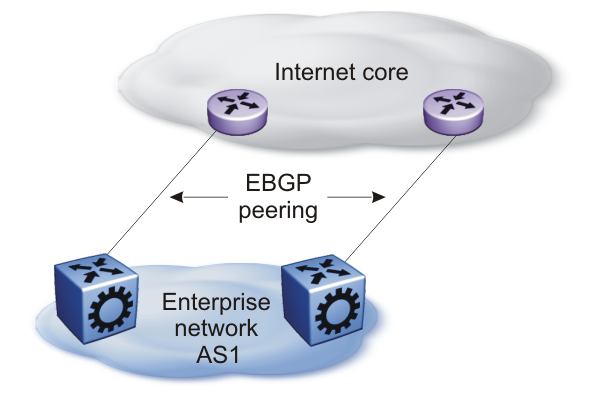 By using BGP, you can perform Internet peering directly between the switch and another edge router. In such a scenario, you can use each switch for aggregation and link it with a Layer 3 edge router, as shown in the following figure.