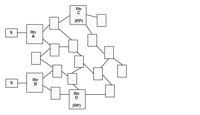 Use this information to select the multicast group address for each multicast sender on the network and to ensure optimal traffic flows. This method is helpful for modeling more complex redundancy and failure scenarios, where each group address has three or more C-RPs.