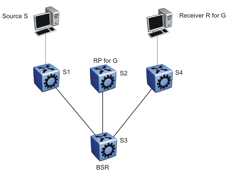 PIM-SM simplified example shows a simplified example of a PIM-SM configuration.