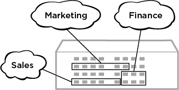 On the Extreme Networks switch in Example of a Port-Based VLAN on an Extreme Networks Switch, ports 9 through 14 are part of VLAN Marketing; ports 25 through 29 are part of VLAN Sales; and ports 21 through 24 and 30 through 32 are in VLAN Finance.