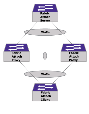 Fabric Attach server mode is also supported over MLAG, which is similar to proxy support on client-facing port side.