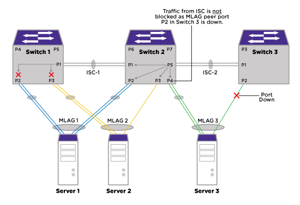 In the case of an This command is available on all Universal switches supported in this document. port failure, the blocking rule on the peer MLAG switch will be removed and the traffic coming on the ISC will be forwarded to the corresponding MLAG port.