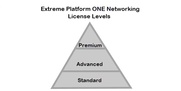 Extreme Platform ONE Networking includes three license levels: Standard, Advanced, and Premium. A Standard license is required to manage devices from ExtremeCloud IQ.
