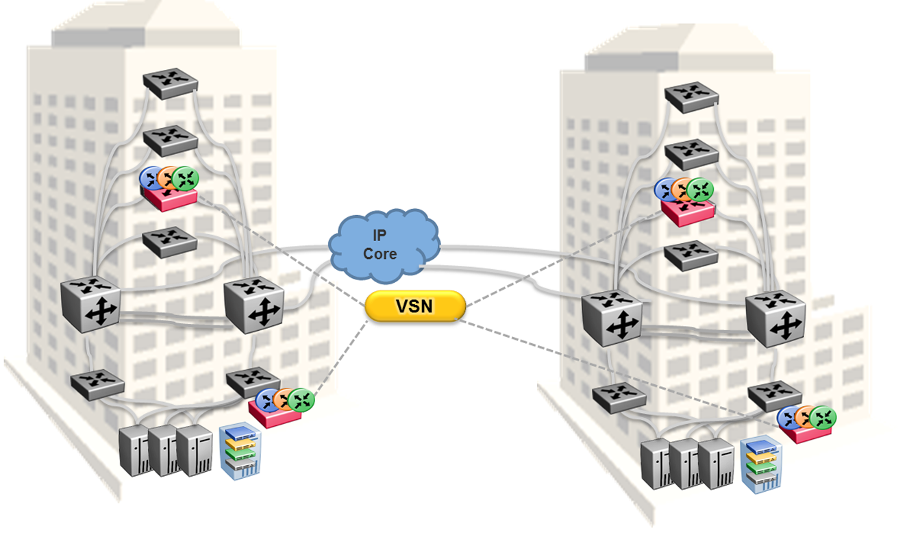 If Fabric Extend with IPsec or fragmentation and reassembly is a requirement, depending on your requirements, you can use a mix of VSP 7400 Series, VSP 4900 Series, or 5720 Series with Fabric IPsec Gateway and XA1400 Series at the main and branch sites.