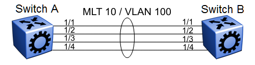 The following illustration shows you an MLT created with LACP within a VLAN used to carry user traffic.
