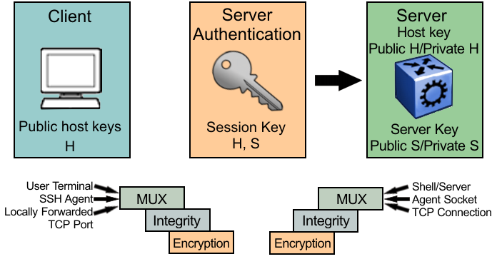 Secure Shell supports a variety of the different public and private key encryption schemes available. Using the public key of the host server, the client and server negotiate to generate a session key known only to the client and the server. This one-time key encrypts all traffic between the client and the server. The switch supports Secure Shell version 2 (SSHv2).
