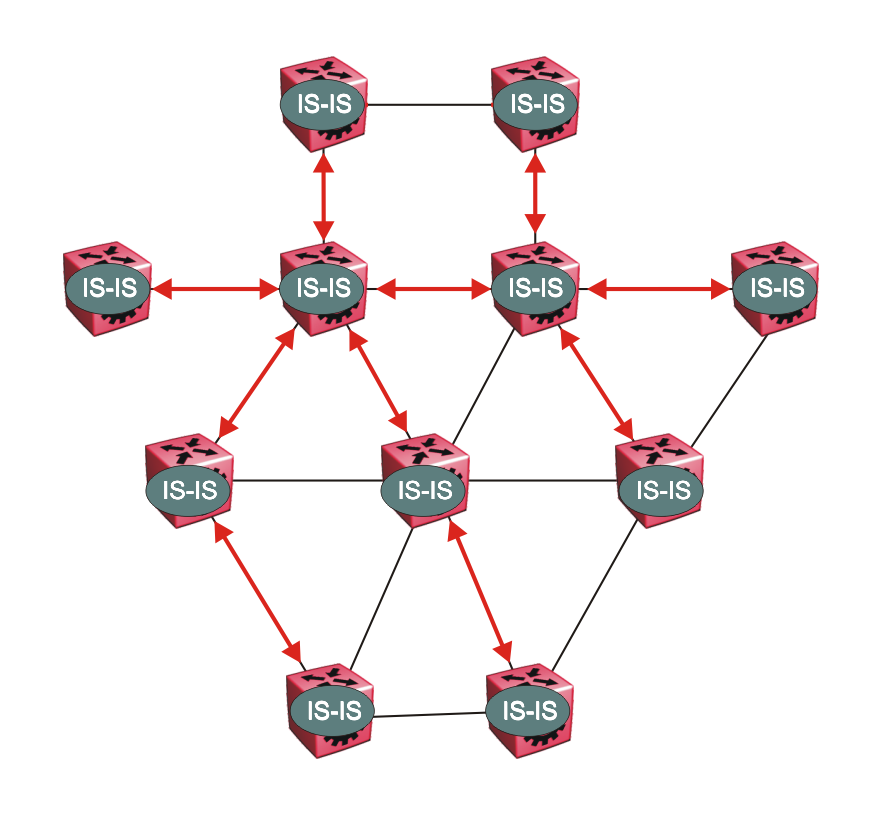 When the network topology is discovered and stored in the IS-IS link state database (LSDB), each node calculates shortest path trees for each source node. A unicast path now exists from every node to every other node