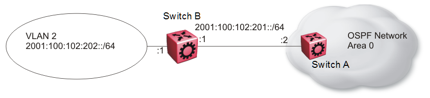 This section shows an example of OSPFv3 configuration. The following figure shows the network.