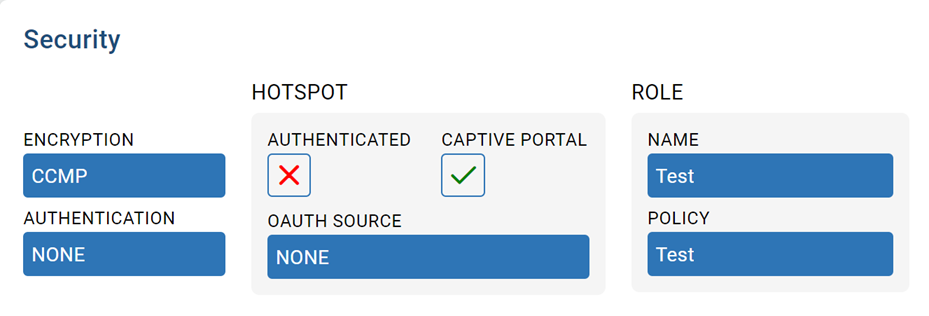 | Captive Portal | Indicates whether a Captive Portals policy is enforced on the WLAN connected to an AP that is deployed as a public hotspot. |