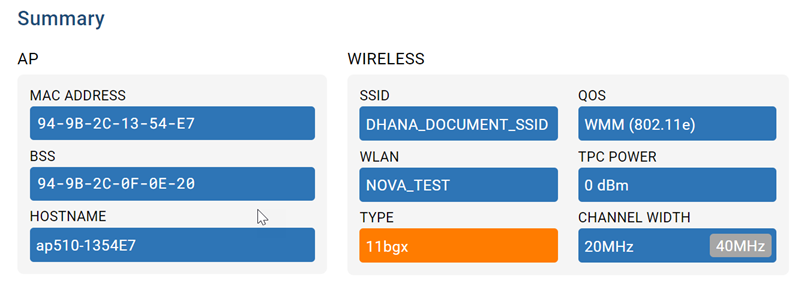 | WLAN | Displays the name assigned to the WLAN when it was created. |