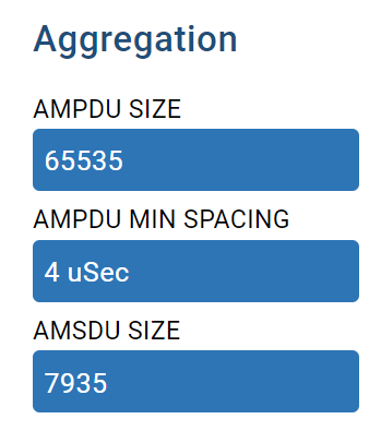 | AMPDU Min Spacing | Displays the time interval between two consecutive Ethernet frames (in uSec). |