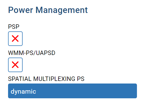 | Spatial Multiplexing PS | Displays whether this feature is enabled on the wireless client. The SM (spatial multiplexing) power save mode allows an 802.11n client to power down all but one of its radios. This power save mode has two sub modes of operation: static operation and dynamic operation. |