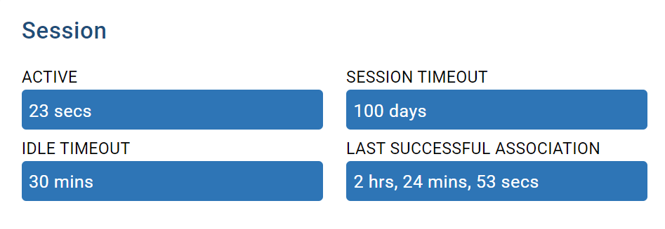 | Session Timeout | Displays the duration for which a session can be maintained by the wireless client without it being disassociated from its connected AP radio. |