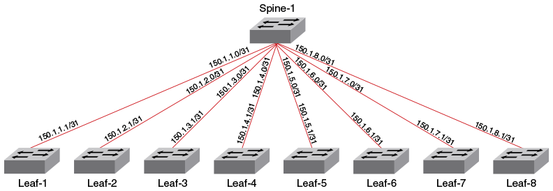 In a typical data center deployment, a spine has a BGP session with each of the leaf nodes. Typically in this situation, the ratio of spine nodes to leaf nodes is 1 to 4. The greater the number of leafs, the greater the administrative overhead at the spine. Every time a new leaf node is added, specific configurations must be added for each spine node. Moreover, if the IP address used by a leaf for neighboring with the spine node changes, BGP peering information at all spines must be changed. Therefore, as the number of leaf node connections increases, a great deal of administrative work can be required.